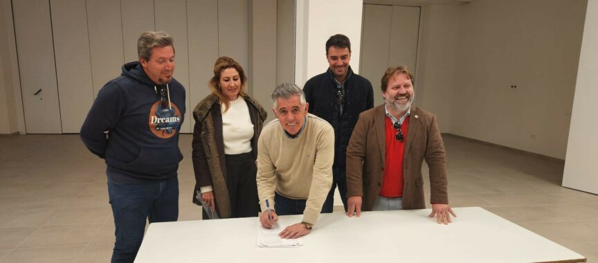 El alcalde de Manilva, Mario Jiménez, ha firmado el acta de recepción final de la obra del edificio polivalente de Puerta del Mar, en Sabinillas. También estuvieron presentes el primer teniente de alcalde, Juan Carlos Morejón, el edil de Infraestructura y Obras, Marcos Ruiz, el encargado de las obras y la arquitecta municipal.