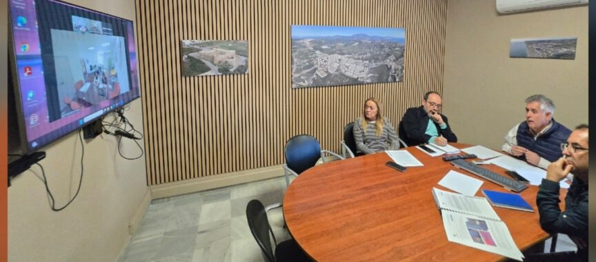 El alcalde de Manilva, Mario Jiménez y la concejala de Vivienda, Eva Galindo, acompañados de responsables municipales a nivel jurídico y técnico, han mantenido una importante videoconferencia con representantes de la Delegación Territorial de la Vivienda en Málaga de la Junta de Andalucía.