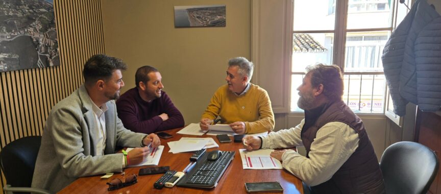 El alcalde de Manilva, Mario Jiménez, junto a los concejales de Hacienda, Infraestructura y Obras y Turismo, Juan Carlos Morejón, Marcos Ruiz y Agustín Vargas, respectivamente, han mantenido una reunión de trabajo centrada en debatir, analizar y avanzar en la definición del presupuesto municipal.