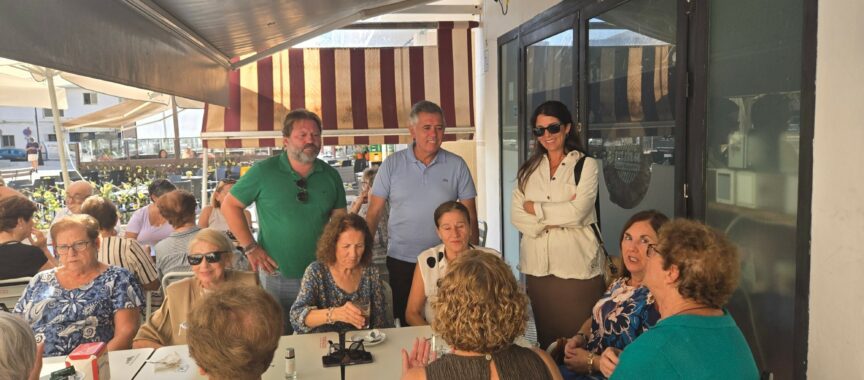 El alcalde de Manilva, Mario Jiménez, la citada delegada, Laura Salazar y el edil, Marcos Ruiz han querido compartir este momento con nuestros mayores.