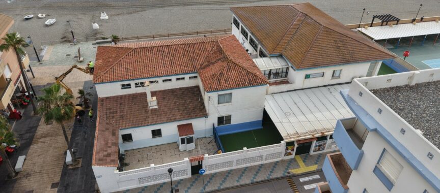 El alcalde de Manilva, Mario Jiménez, la concejala de Educación, Laura Salazar y el edil de Infraestructura y Obras, Marcos Ruiz, han visitado el colegio San Luis para comprobar las últimas actuaciones que se están acometiendo, como es la reparación del tejado.