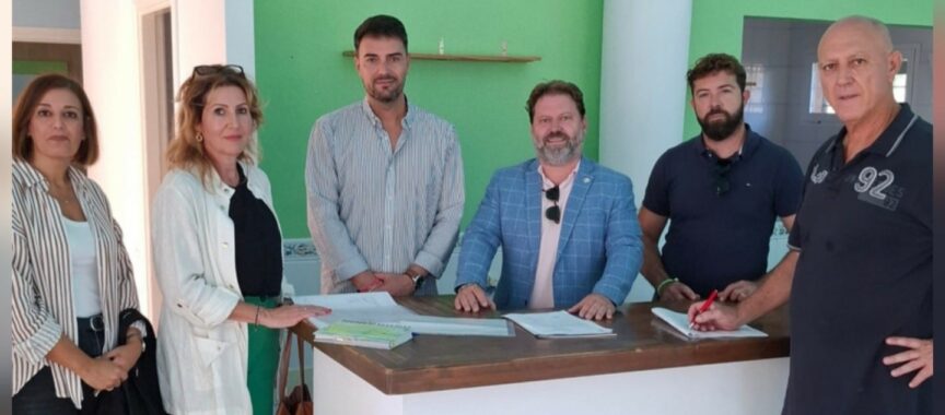 El concejal de Infraestructura y Obras, Marcos Ruiz, ha firmado el acta de inicio para la ejecución de la Obra Cocina para Servicio Social en Jardines de Sabinillas (Bosquipark). A esta rúbrica se han sumado el concejal de Urbanismo, Juan Carlos Morejón, el director de área, Alejandro Medina, un representante de la empresa local que lo realizará, además de la directora técnica y la arquitecta municipal.