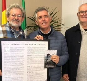 El alcalde de Manilva, Mario Jiménez, ha recibido en el Ayuntamiento a los escritores locales Fernando Morales Muñoz y Francisco...