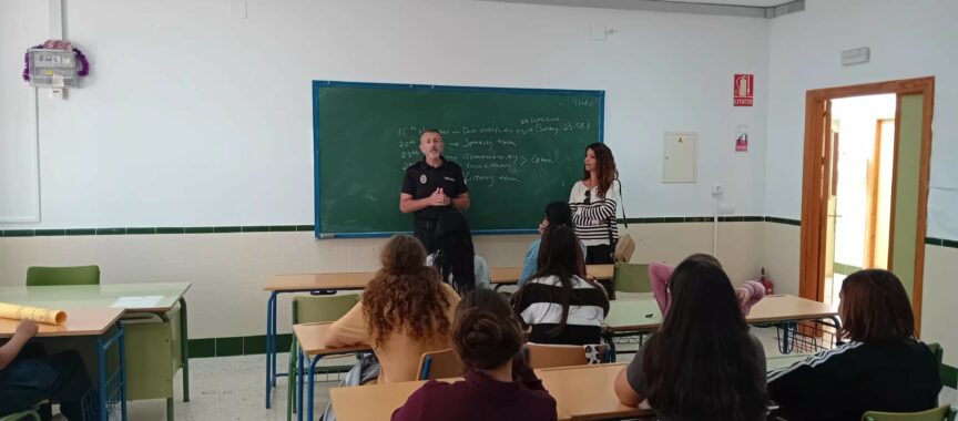 El alcalde de Manilva y responsable de la Seguridad Ciudadana, Mario Jiménez y la concejala de Educación, Mario Jiménez y la concejala, Laura Salazar, agradecen que se retomen las clases impartidas por agentes de la Policía Local especializados en Educación Vial, en este caso, comenzando en el IES Las Viñas.